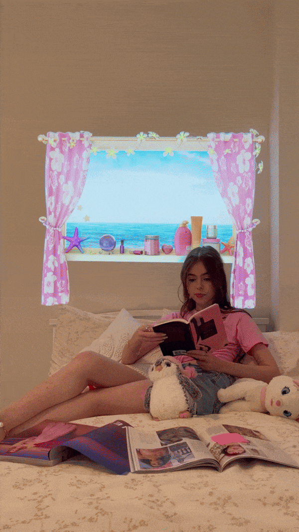 I have been experimenting with using my animation skills to create projection art since 2021, and have been posting some of my work online as @TheGirlWithADigitalDream since February 2024. I have created hundreds of different projection artworks that use 3D animation and motion graphics to create digital dreamworlds. Since beginning to post this work online, I have also launched an online store where my visuals can be purchased and downloaded by my audience to play on their own projectors at home. My full website for 'The Girl With A Digital Dream' can be found here. Some highlights of my projection artwork can be seen below.
