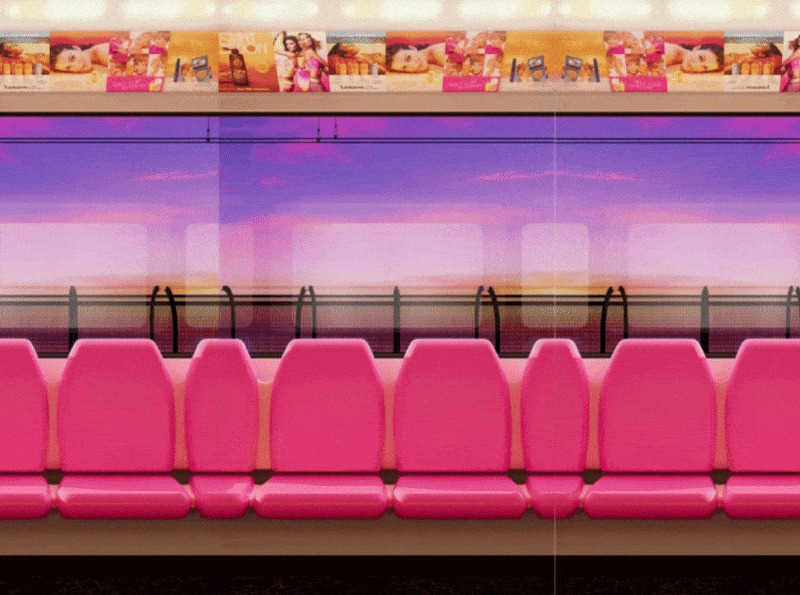 Once the camera is situated inside the train carriage, we take a moment to hold on the train as it itself moves through different environments.